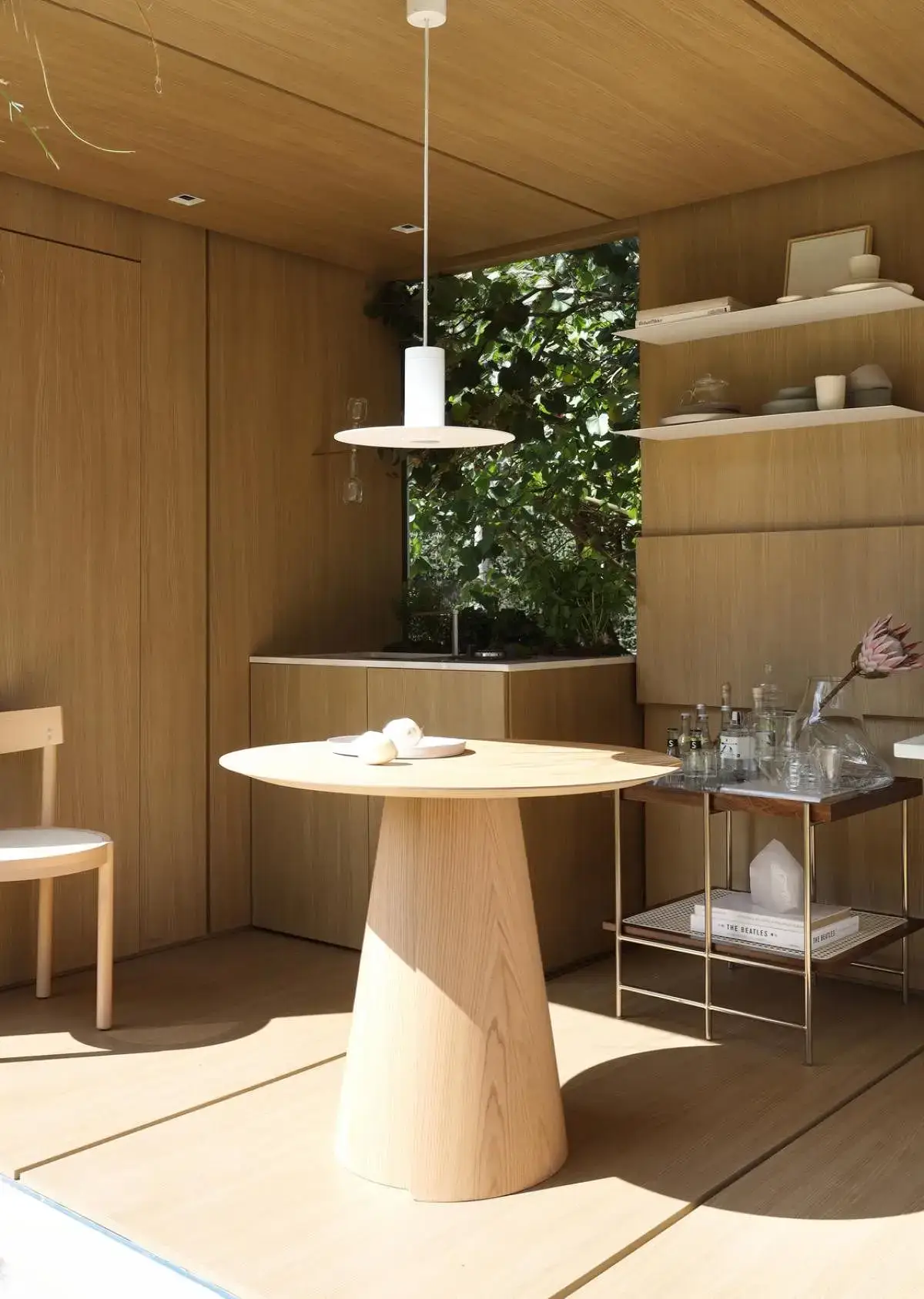 Com design escandinavo, o Estúdio Elo foi pensado para um morador, tendo como destaque o mobiliário planejado em madeira clara sustentável (padrão Grano, da Criare) que reveste todo o contêiner para que ele abrace o espaço e transmita a sensação de acolhimento e conforto necessário.