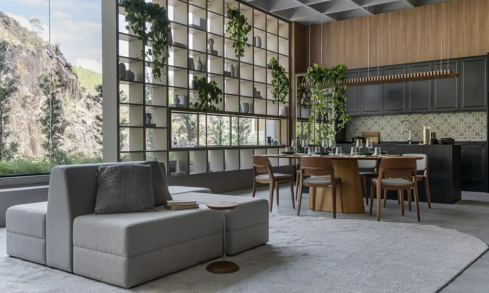Nas tendências de decoração 2026, o bem-estar não é resultado de excesso de elementos naturais, mas da harmonia entre materialidade, iluminação, proporção e uso. Quando o projeto é concebido sob medida, a conexão com o natural se traduz em conforto cotidiano e em uma experiência espacial consistente ao longo do tempo.
